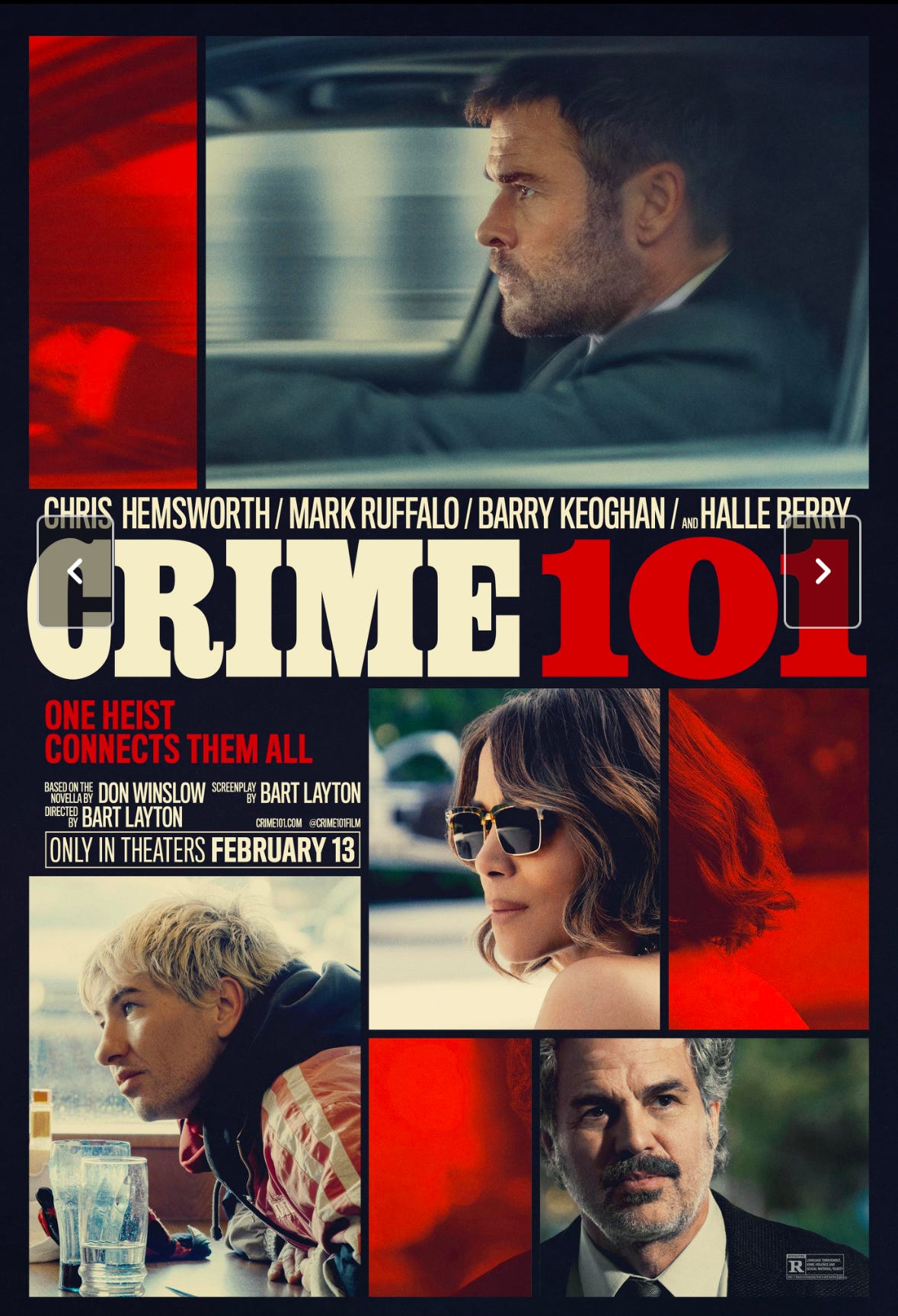 Crime 101–I was surprised by how much I enjoyed this film. The screenplay truly was phenomenal.